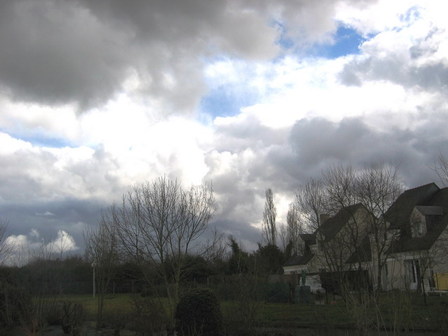 Mais le ciel changeant, avec ses mille filaments de gris perle et d'ardoise, ses riantes boules blanches, ses mauves très pâles ou très sombres que côtoient d'innocentes trainées de bleu, me plaît infiniment.