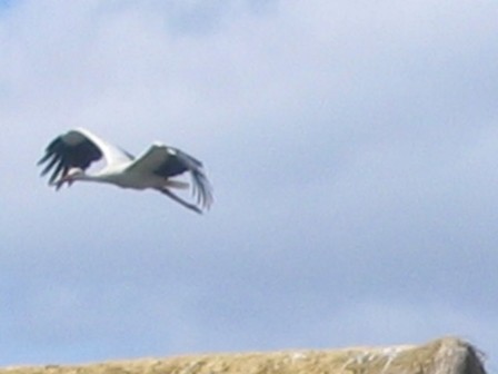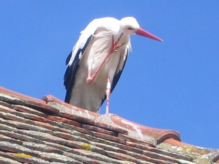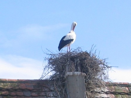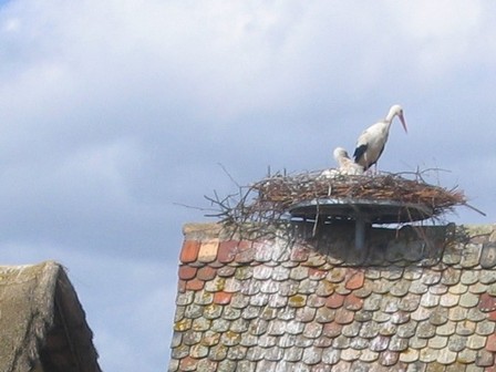 On a vu, certaines années, des cigognes s'installer dans notre région...une a séjourné longtemps dans un champ à 2 km de chez moi... Une commune a installé des "nids" sur des pylônes...Les cigognes sont parties...A l'Arche (Refuge animalier de CHATEAU - GONTIER, 53), il y en a une qui est arrivée, après électrocution...en 1954!...Aux dernières nouvelles, elle serait encore en vie! On n'est pas allé à l'Arche cette année, mais cela ne saurait tarder!...On prendra de ses nouvelles!...