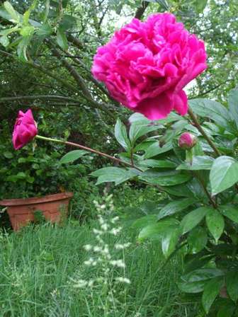 Dans le jardin de Lily, le pic-vert vient parfois se poser sur la pelouse, mais aujourd'hui, ce sont plutôt quelques graminées qui veillent les pivoines. Avec elles, rien à craindre !!!
