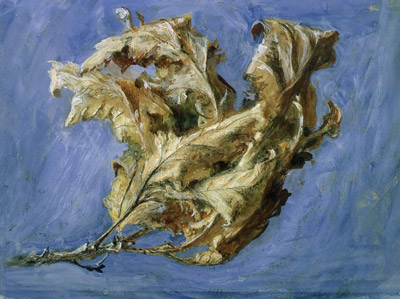 Feuilles de chêne mortes, John Ruskin 1879. Collection de la guilde Saint Georges, Musée de Sheffield, à voir ici et feuille trouvée là.