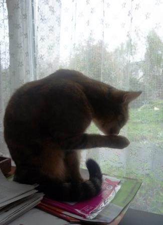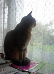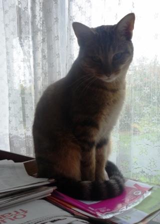 Curieux comme les chats et les chattes sont rarement appelés par leur prénom. Celle-ci s'appelle Cannelle, mais répond bien aussi au surnom de Moumoune, plus affectueux peut-être. Avec la pluie et le vent de novembre, elle affectionne la chaleur de la maison et se complait à regarder le jardin à travers la fenêtre. Elle parcourt des yeux le journal local et de nombreuses revues qui trainent sous sa patte. Ensuite, il est avéré qu'elle médite longuement sur les nouvelles du quartier, de l'école ou d'ailleurs. Dommage que peu de monde lui demande son avis, elle aurait beaucoup à dire ...