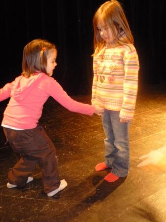 Depuis plusieurs mois, les lutins de grande section s'initiaient aux fondamentaux de la danse contemporaine avec une chorégraphe et pédagogue : Marie-France Roy. Une très belle aventure - hélas trop courte ! - pour eux et la maitresse… Avec rigueur, souplesse et enthousiasme, cette femme a su amener les lutins à se mouvoir avec aisance - " les pieds dans le… sol, la tête dans le… ciel, et les bras le long du… corps !" - à respecter les autres et à agir de façon collective tout en offrant, chacun, une expression bien personnelle.