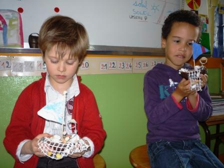 Une fois les moitiés de cabosse vidées et nettoyées, les deux copains les ont transformées en ... "Bateau pour aller sur l'eau" ! Qui embarque avec eux ? ;-))