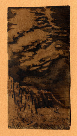 Lavis mixte d'encre et café, attribué à Victor Hugo.