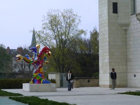 Une séance de cinéma reportée, faute de place, alors elle s'est dirigée vers le Logis Barrault, un ancien hôtel particulier, style gothique flamboyant du 15ème siècle, abritant le Musée des Beaux-Arts d'Angers. Elle souhaitait juste revoir une statue fort colorée qui, depuis cinq ans, trône sur la terrasse et bien sûr flâner un peu dans les jardins en contre-bas.