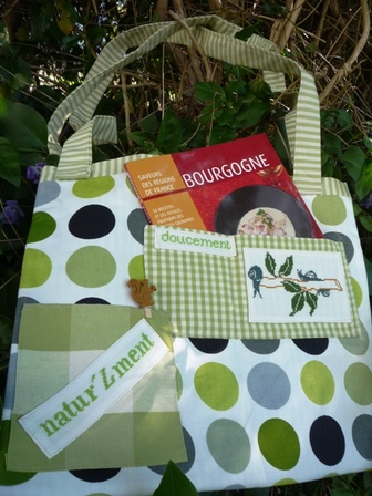 Le cadeau est bien arrivé en Anjou. Un sac très nature, soigneusement piqué-brodé, pour des balades au rythme des gros de Bourgogne, que l'on peut voir glisser doucement sur un rameau nouveau !